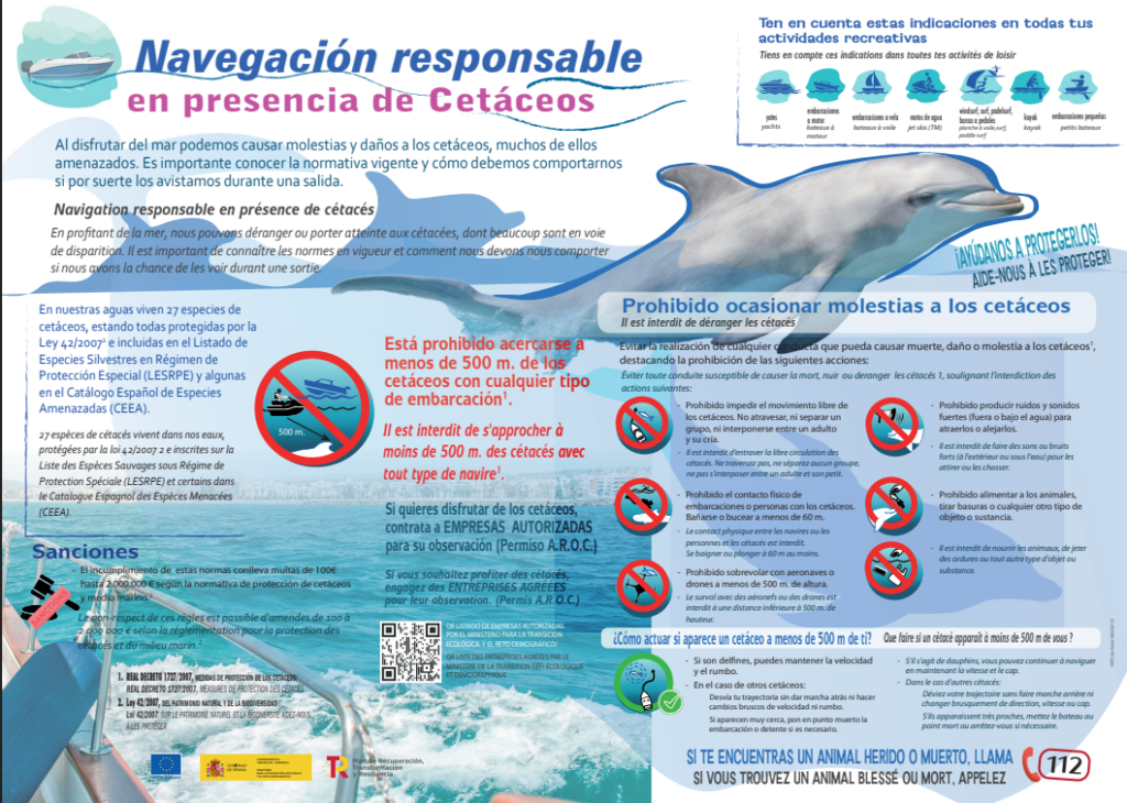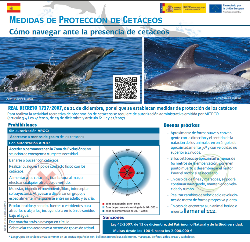 Para realizar la actividad de avistamiento de cetáceos, las embarcaciones deberán estar autorizadas por el Ministerio de Transición Ecológica. Puedes consultar el listado de embarcaciones autorizadas aquí.
